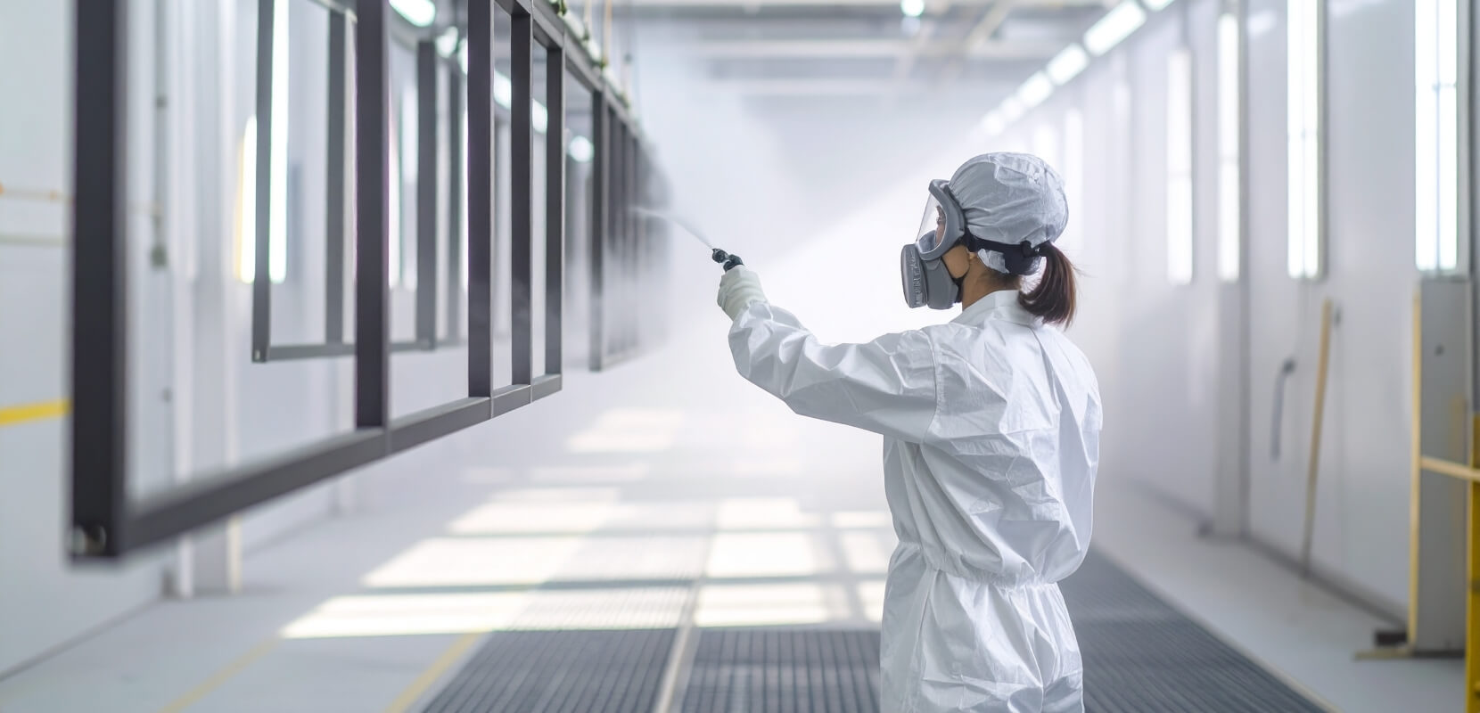 粉体塗装とは粉体塗装は、液体を使わない環境にやさしい塗装方法です。粉末状の塗料を静電気の力で建材にしっかりと付着させ、高温で焼き固めることで、衝撃や錆に強い、むらのない強靭な塗膜を作ります。溶剤を使用しないため、有害物質(VOC)の排出がほとんどなく環境に優しいのが特長です。さらに、吹き付け時に付着しなかった余剰の粉末は回収・再利用できるので、資源の無駄をなくし、コスト削減にもつながります。
