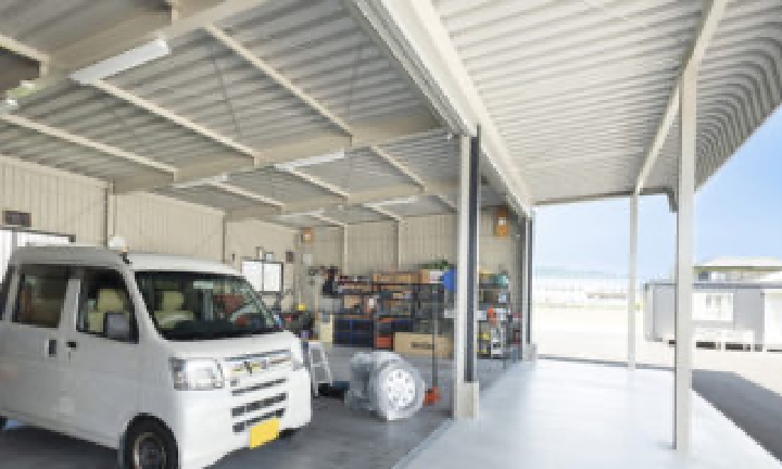 圧倒的な強度を誇る鉄骨構造が、柱の少ない大空間を実現。大型機械や資材を収納できる高さのある広々とした空間を可能にします。