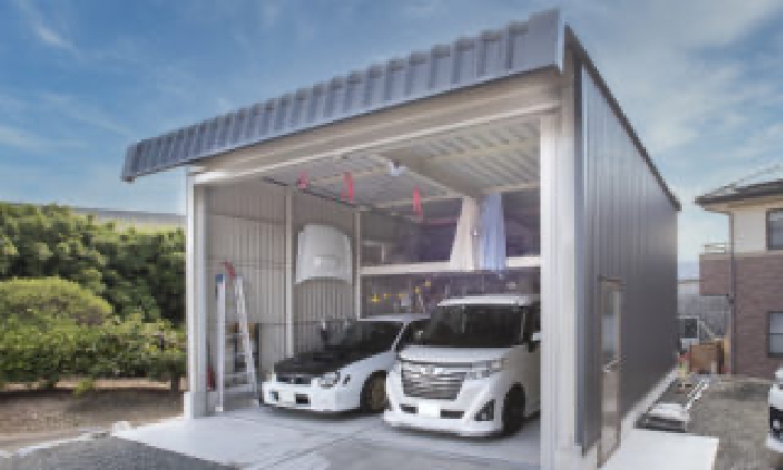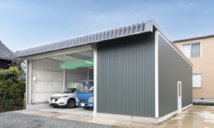 大空間・短納期で自由自在のアレンジ可能。ガレージや店舗、作業場に。広く明るく使いやすく、納期が短く低コスト。品質も見た目も◎。